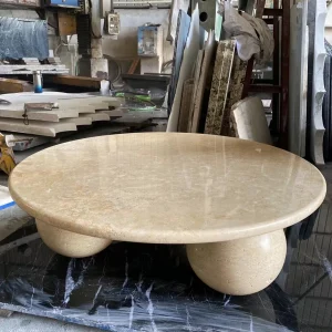 Product Type Travertine round coffee table Designed for indoor use in luxury hospitality and residential spaces.