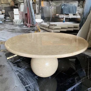 Quick Summary: Show Stone polished travertine round coffee table features a refined beige tone with filled pores for a clean, premium surface. Produced in custom sizes with project-ready edge finishing, this travertine table suits luxury hotel lounges, boutique spaces, and high-end residential living rooms. MOQ 1 set, typical lead time about 4 weeks, packed in export wooden crates with customization available.