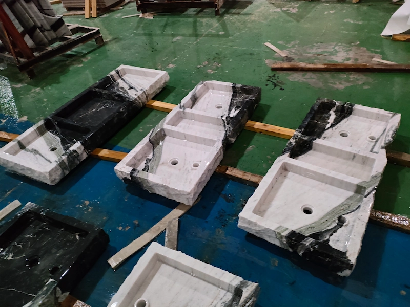 Panda White Marble is a natural stone with inherent variation in veining direction, contrast level, and shade range. Each block will present unique movement. For projects requiring tighter consistency across multiple solid marble basins, Show Stone can support selection photos and range control prior to machining.