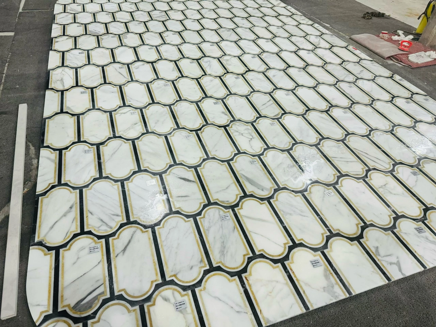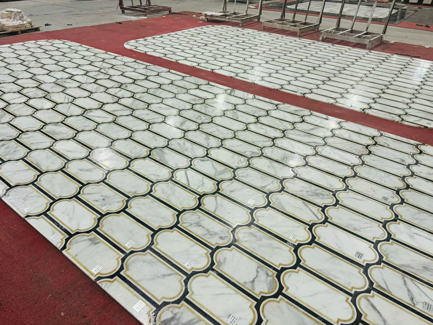 - Dry layout: Pre-lay sheets to confirm shade distribution and pattern direction before final fixing of the lantern pattern marble floor tile.