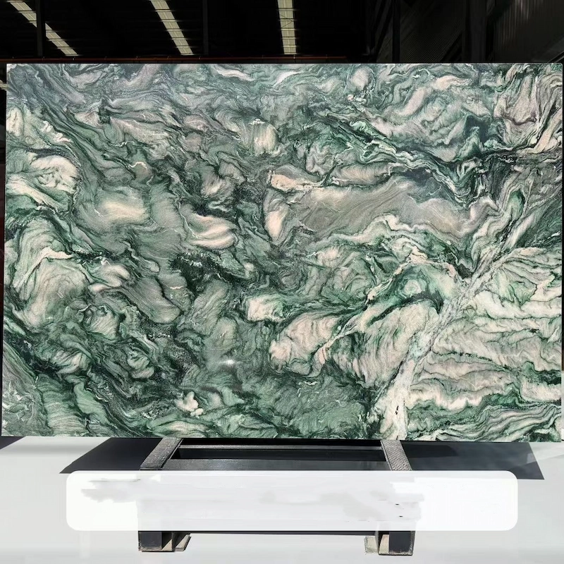 - Distinctive green movement: Rich green base with layered white and smoky flowing pattern creates a bold and artistic natural stone surface.